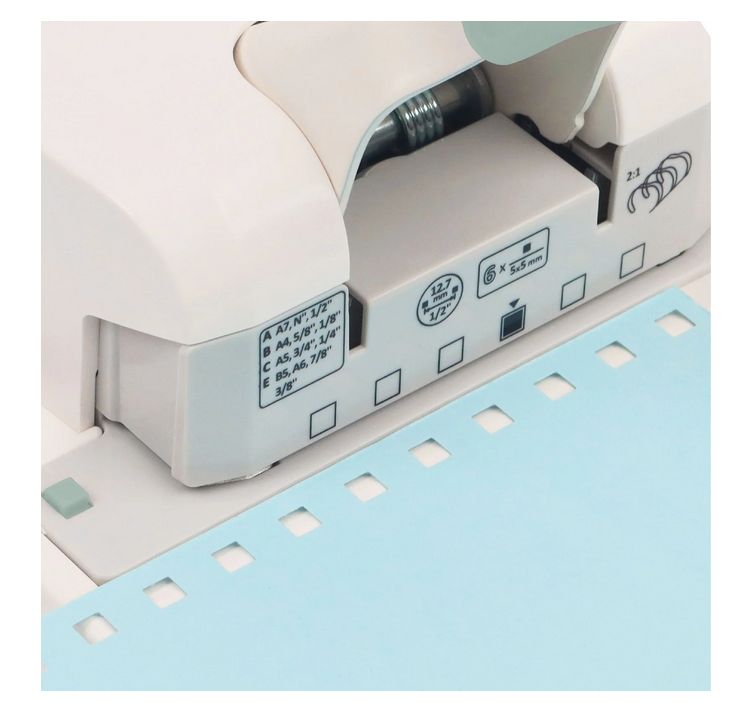 Diese Kartusche wurde speziell für die Verwendung mit der Vaessen Creative Bind Easy Bindemaschine (2021-400) entwickelt. Mit dieser Kartusche stanzen Sie 8 quadratische Löcher mit 5 x 5 mm für Metall-Drahtbinderücken. Eine ideale Erweiterung, um Ihre Maschine vielseitiger zu machen und noch mehr kreative Möglichkeiten zu entdecken. Verleihen Sie Ihren Notizbüchern, Planern und kreativen Projekten einen verspielten oder stilvollen Akzent – ganz nach Ihrem persönlichen Stil. Jede Kartusche lässt sich einfach austauschen und stanzt bis zu 10 Bögen (80 g/m²) gleichzeitig. Der Abstand zwischen den Löchern beträgt 12,7 mm.