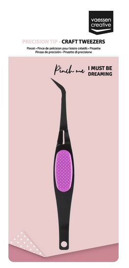 Die schwarze Präzisionspinzette von Vaessen Creative hat eine abgewinkelte, feine Spitze zum Aufnehmen, Sortieren und Platzieren kleiner Materialien. Ein praktisches Werkzeug für das Kunsthandwerk zum präzisen und kontrollierten Gestalten von Bügelperlenbildern, Paillettenbildern, Diamond Paintings, Scrapbooks und vielen weiteren Präzisionsarbeiten.