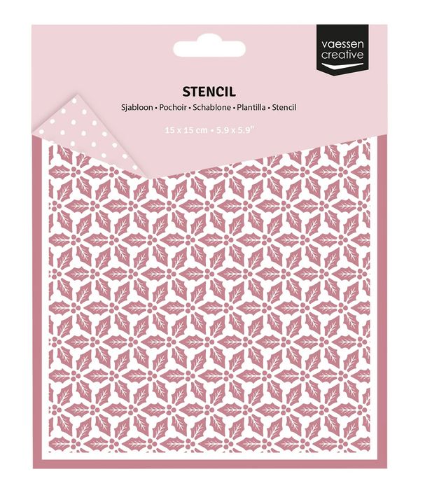 Mit dieser tollen Schablone (auf Englisch Stencil genannt) von Vaessen Creative verleihen Sie all Ihren Karten, Scrapbooks oder Journal-Seiten im Handumdrehen eine kreative Note. Diese Schablone gehört zur ‚Jolly Mail Collection‘, der Weihnachtskollektion 2025 von Vaessen Creative. Mit einer Größe von 15 x 15 cm ist diese Siebdruck Schablone mit Stechpalmenblätter ideal als Hintergrund einsetzbar. Die Schablone ist hergestellt aus robustem Kunststoff, ist leicht zu reinigen und kann immer wieder auf Papier, Tonkarton oder Pappe verwendet werden. Kombinieren Sie die Schablone mit Tinte, Farbstiften oder Blending Brushes für besondere Ergebnisse!