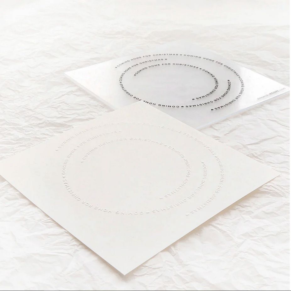 Mit dem Embossing Folder 'Typo Kreis Coming home for christmas' können Motive geprägt werden.