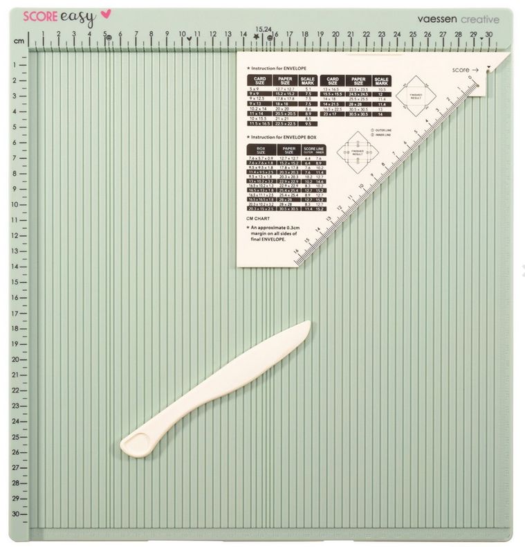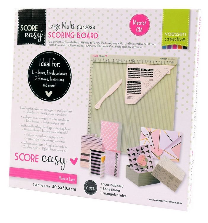 Das Score Easy von Vaessen Creative ist ein vielfältig einsetzbares Falzbrett mit einer Arbeitsfläche von 30,5 x 30,5 cm. Perfekt zum Basteln von Umschlägen, Faltkartons, Geschenkboxen, Karten und für Falzlinien.